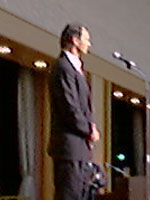 | Dr. Georgeff (Conference Chair) making a speech at banquet. | Prof. Ohsuga (National Commitee Chair) making a speech too. |